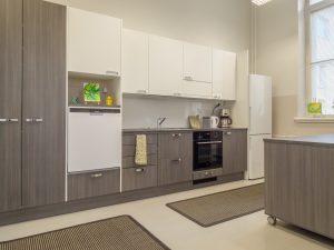 • Muunneltavat ja inspiroivat tilat Isossa salissa mahtuu mukavasti istumaan ja ruokailemaan samaan aikaan n. 25-30 henkeä, lisäksi käytössäsi on pienempi kokoustila n.10 hengelle sekä kaksi sivuhuonetta oleskeluun tai pienryhmän työskentelyyn. Pientä tekemistä löytyy myös lapsille