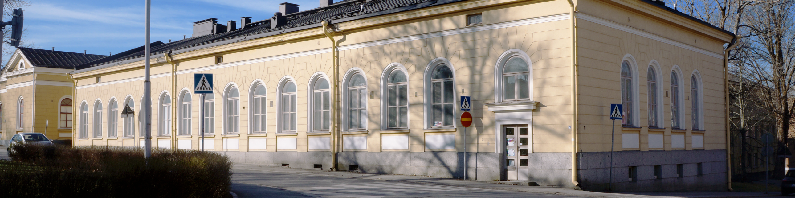 Saavu osoitteeseen Sibeliuksenkatu 21 ja lähesty kellertävän kivitalon nurkkaa kohti. Oven löydät rakennuksen nurkasta tien puolelta.